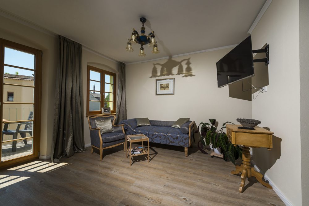 This apartment located on the 2nd floor of the house, talking to the lovers of classicism and is as well as the apartment “Zittau” with a modern kitchen equipped. In addition, it also offers guests an enchanting view over the green courtyard on the roofs of the old town Görlitz.